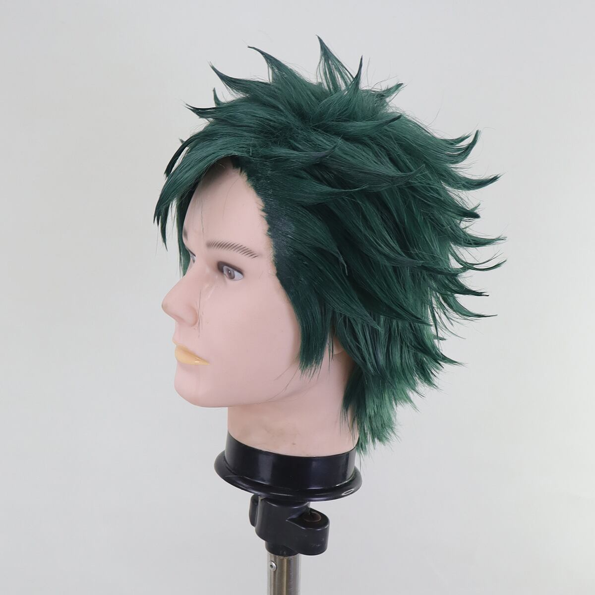 コスプレ耐熱ウィッグ オーダー キャラクター造形ウィッグ ダークグリーン 前髪立ち上げ ショート ウィッグ ★ツイステッドワンダーランド/トレイ・クローバー 等 ★受注品★