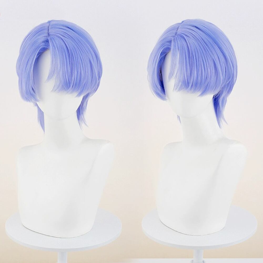コスプレ耐熱ウィッグ パステルブルー ワンレン 前髪立上げ ショートカット キャラクターウィッグ ★パンティ&ストッキングwithガーターベルト/ポリエステル 等 ★即納品★
