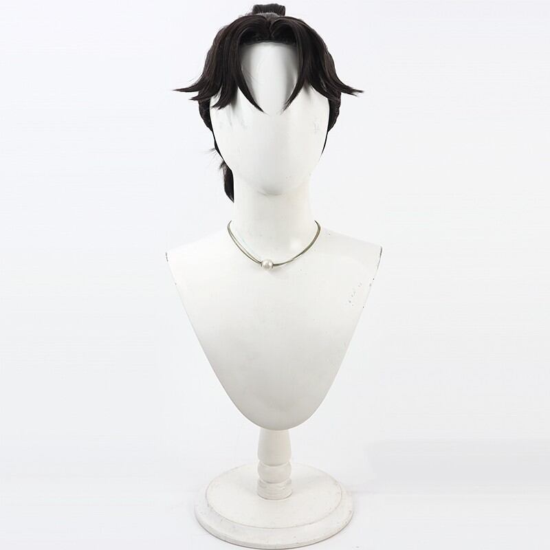 コスプレ耐熱ウィッグ ダークブラウン 結い上げ センター分け ポニーテール キャラクターウィッグ ★忍たま乱太郎/若王寺勘兵衛 等 ★受注品★