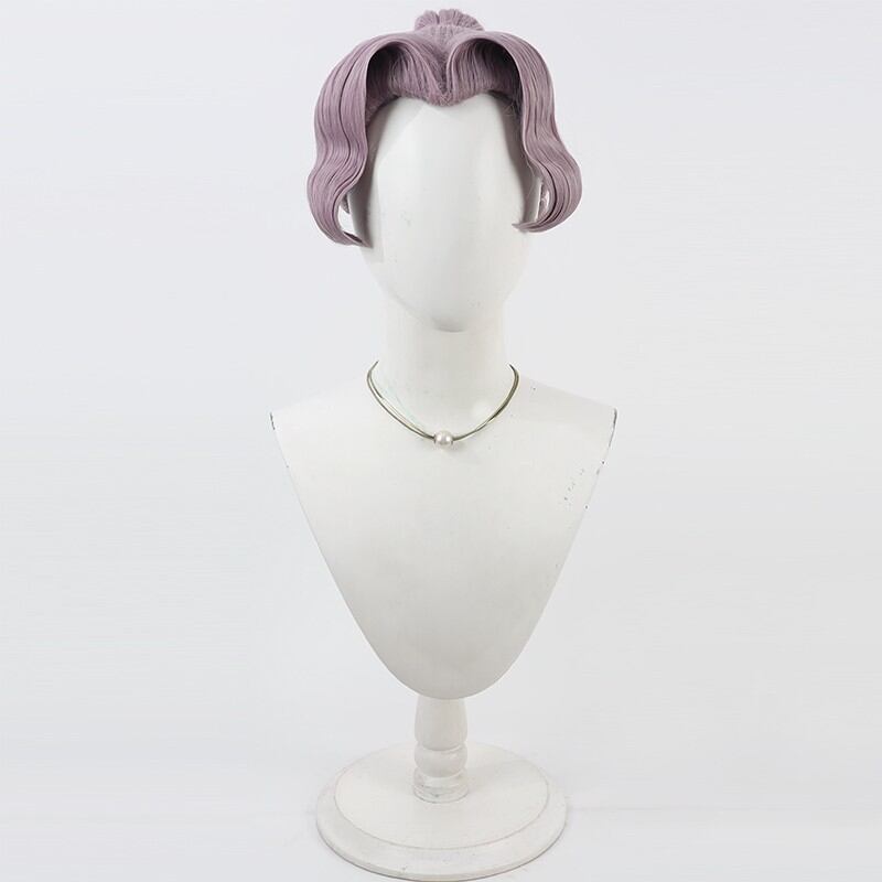 コスプレ耐熱ウィッグ パステルパープル ラベンダー 結い上げ センター分け ワンレン ポニーテール キャラクターウィッグ ★忍たま乱太郎/桜木清右衛門 等 ★即納品★