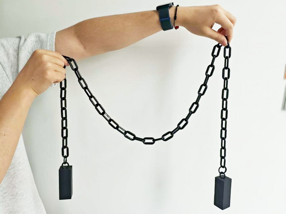 プラスチックのチェーンと木製の分銅で出来た小道具です!