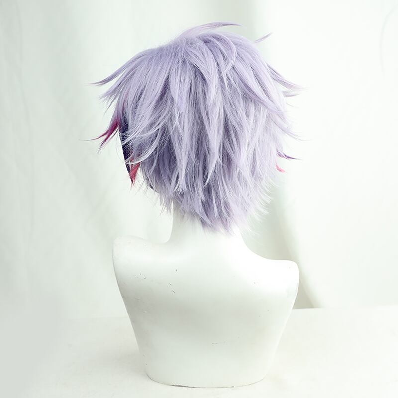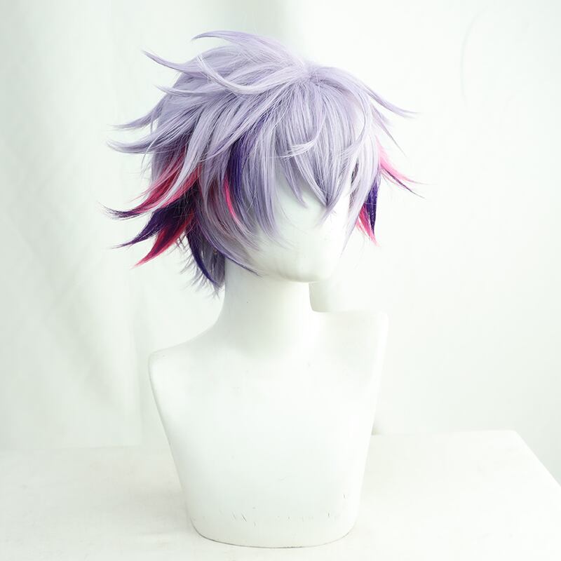 コスプレ耐熱ウィッグ ラベンダーグレイ パープル ピンク メッシュ ショート キャラクターウィッグ ★にじさんじ/不破湊 等 ★受注品★