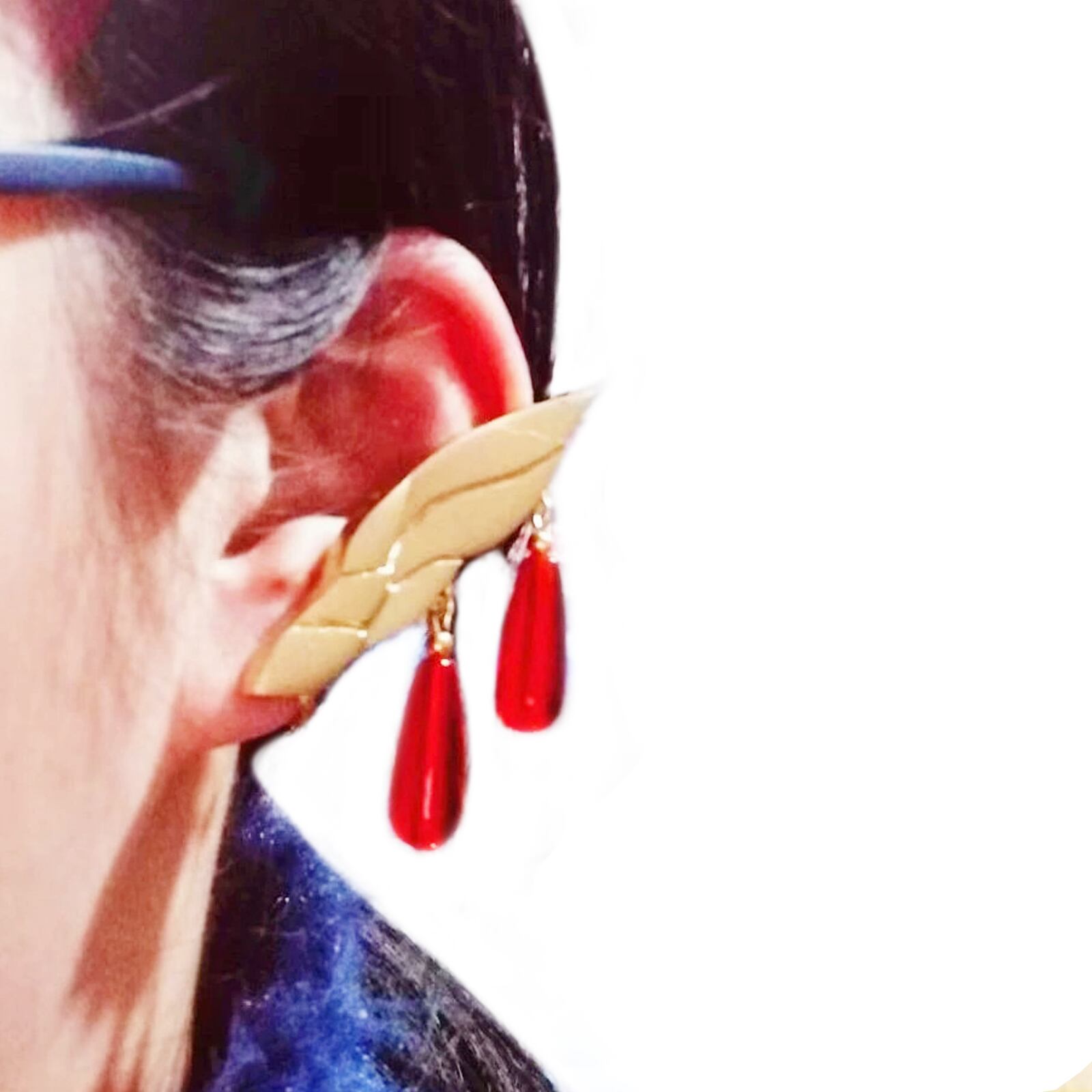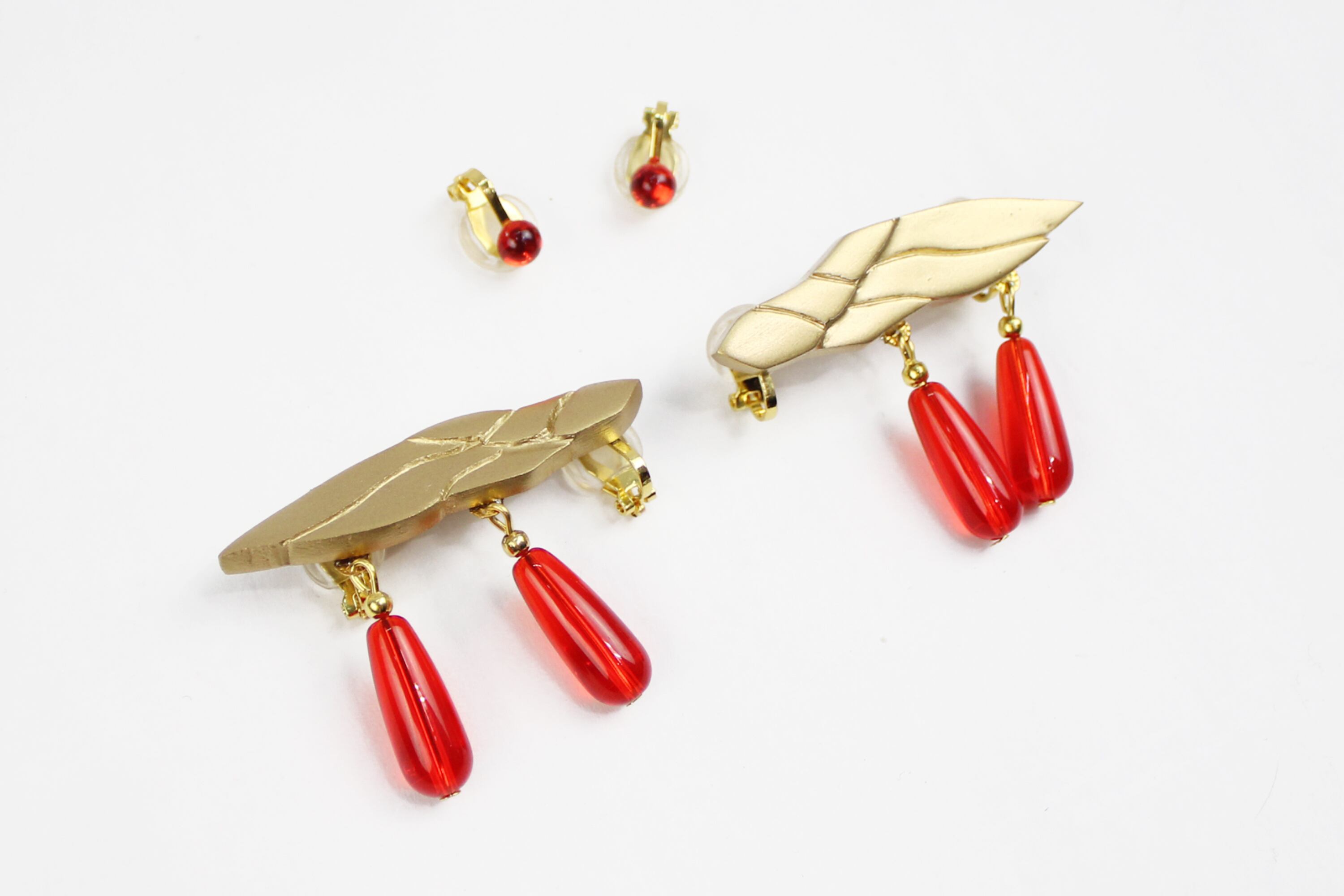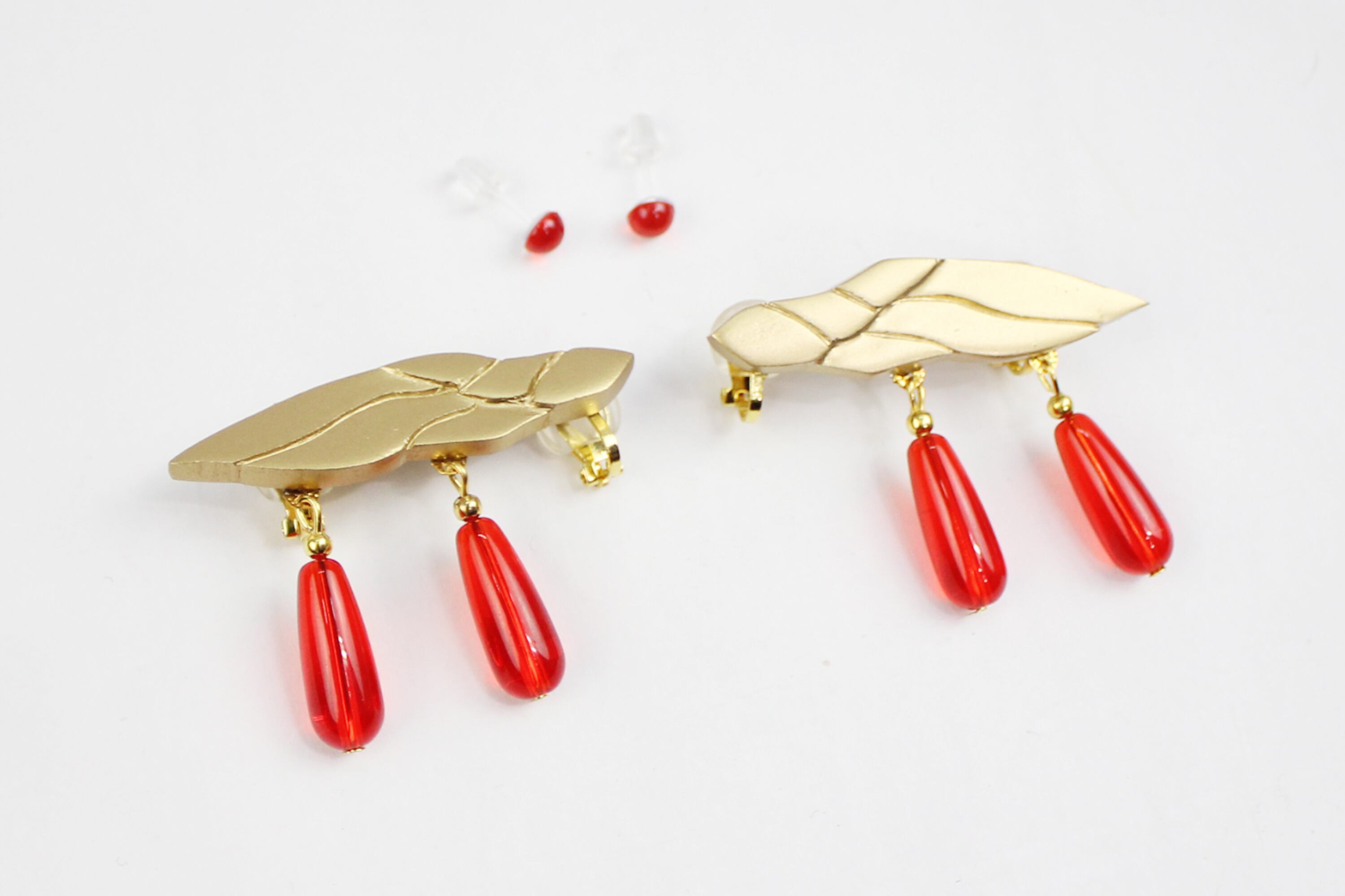 メインの羽の耳飾りはどちらも挟むタイプのイヤリングになっておりますので予めご了承下さいませ。