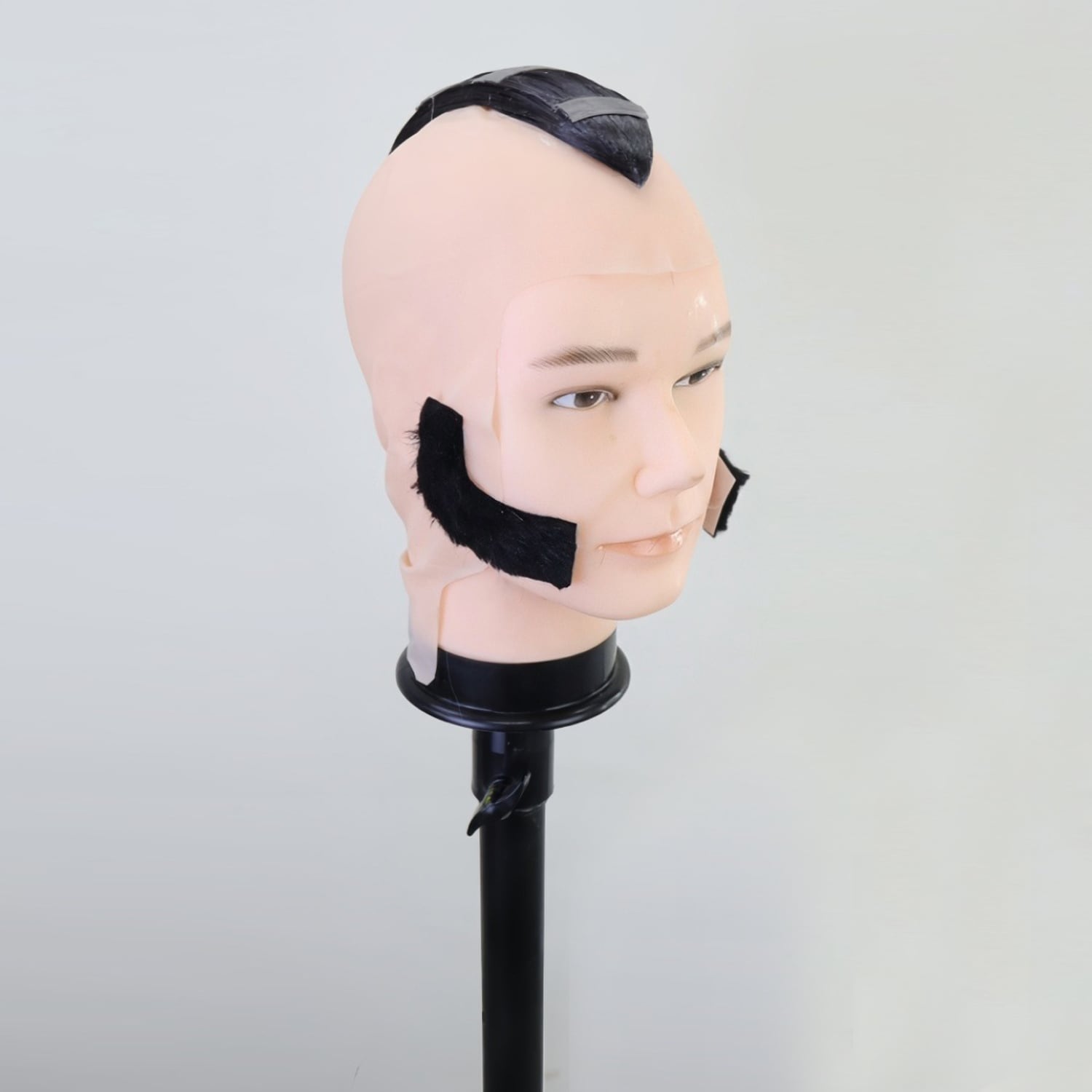 前髪の立ち上げや形の固定にはワックスを使用して製作しております。製作時の接着剤が一部ウィッグに付着している場合がございます
