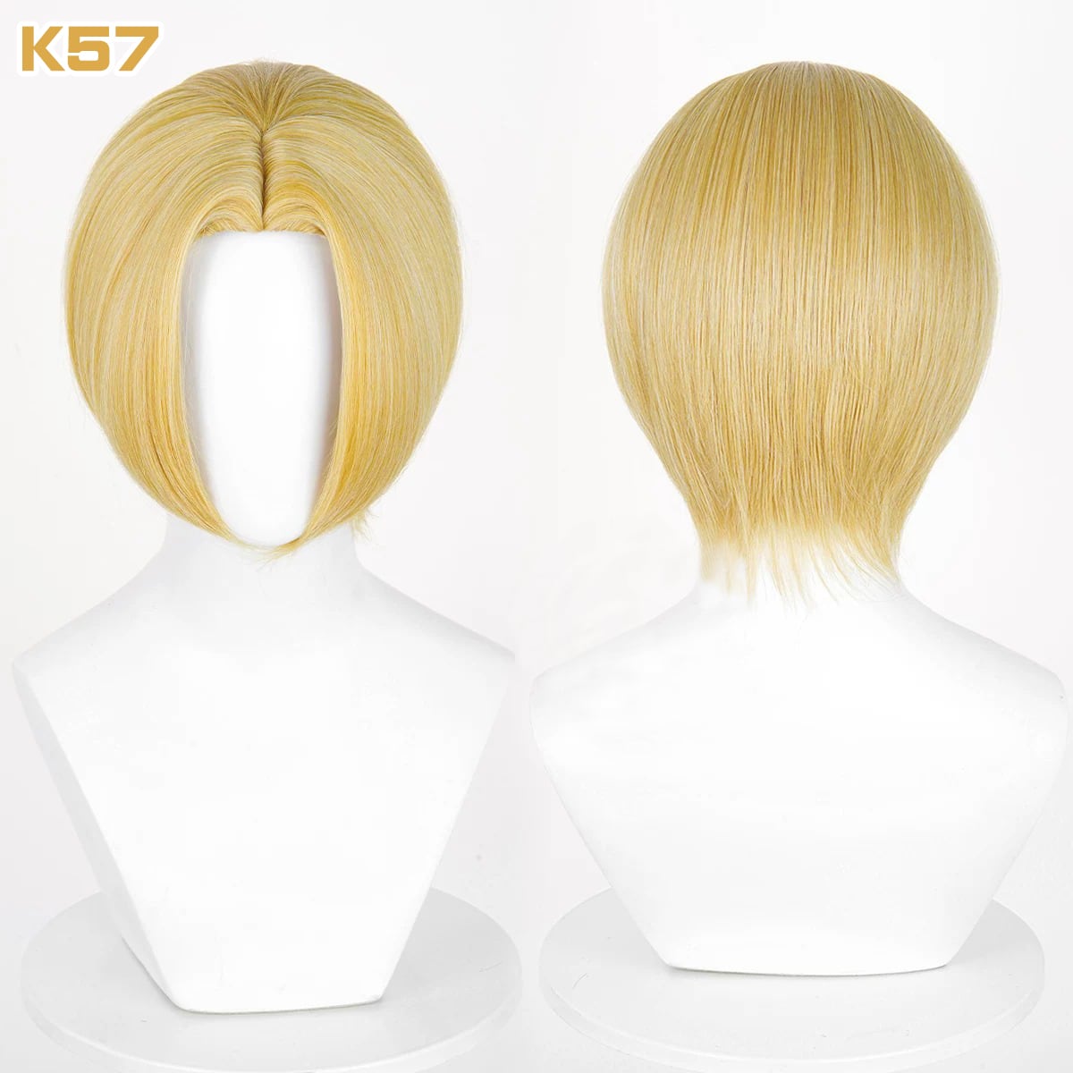 コスプレ耐熱ウィッグ 汎用カラー 前髪立ち上げ センター分け ワンレン ショートカット ゴールドカラー ★にじさんじ/エクス・アルビオ ★チ。/ラファウ 等 ★168色のバリエーション!多様キャラのコスプレに最適です! ★即納品★