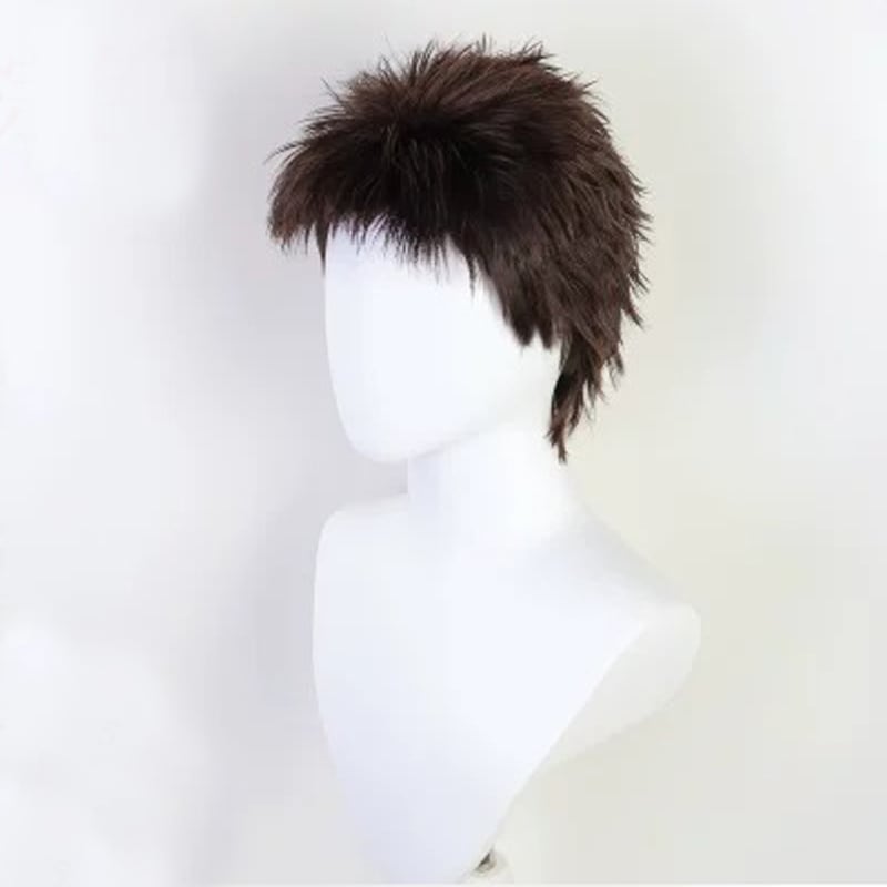 コスプレ耐熱ウィッグ コスプレ耐熱ウィッグ オーダー キャラクター造形ウィッグ ブラウン ベリーショート ウィッグ 付け髭 セット ★銀魂/マダオ 長谷川泰三 等 ★即納品★
