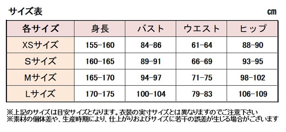 ※商品画像に記載のサイズは、衣装の実際サイズとは異なります。