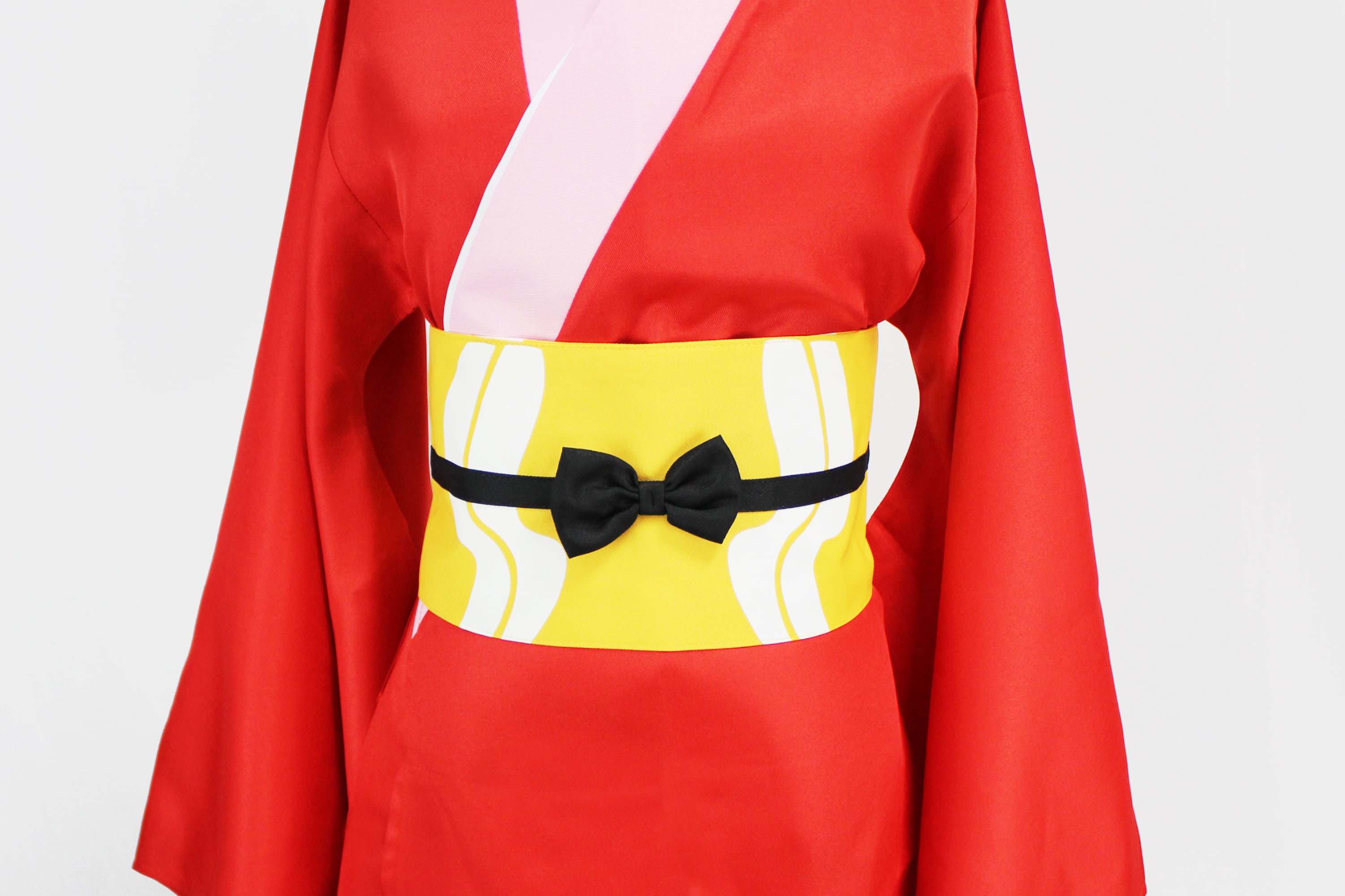 帯と黒色の飾りリボンは一体型仕様となっており、マジックテープで簡単に着用可能。