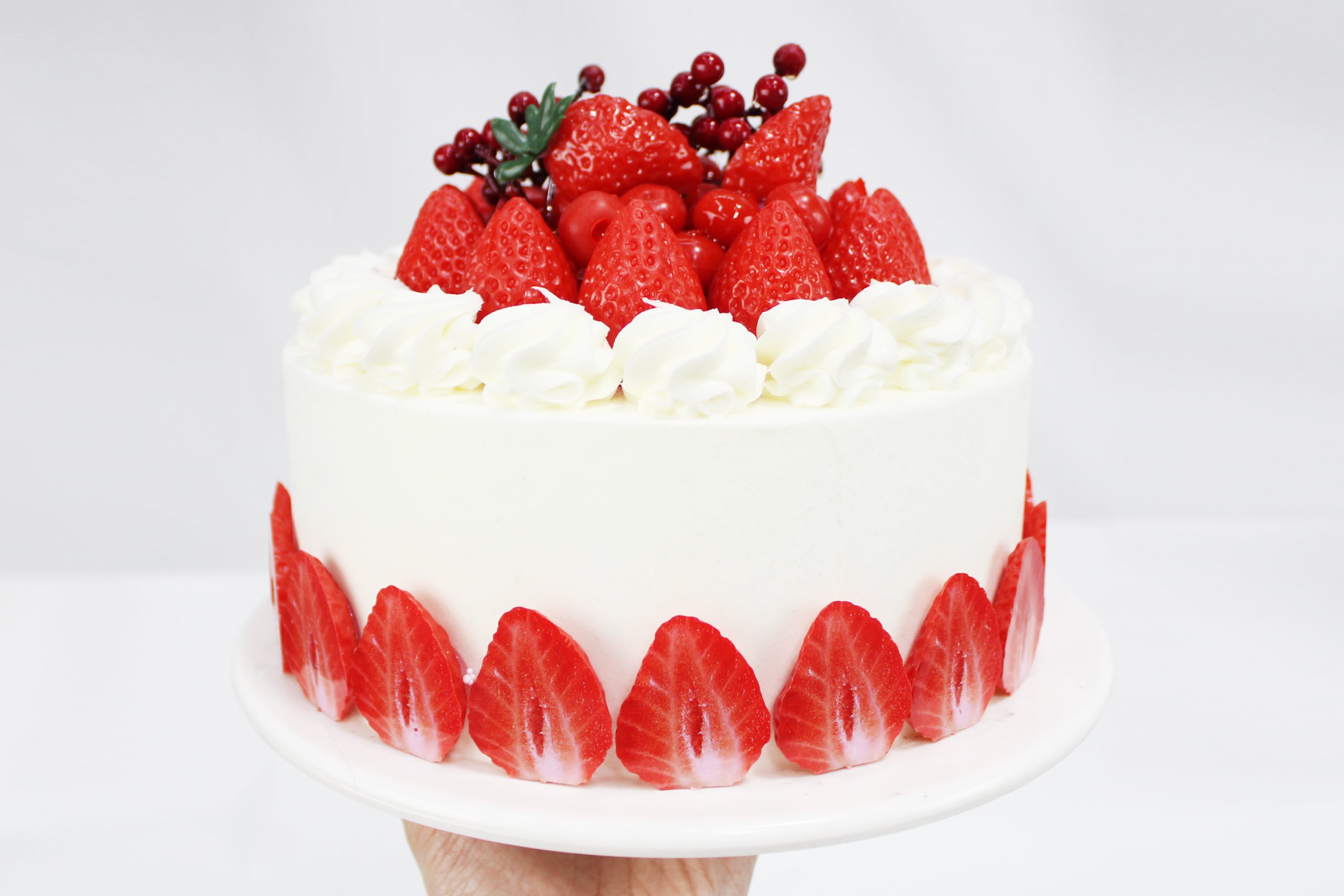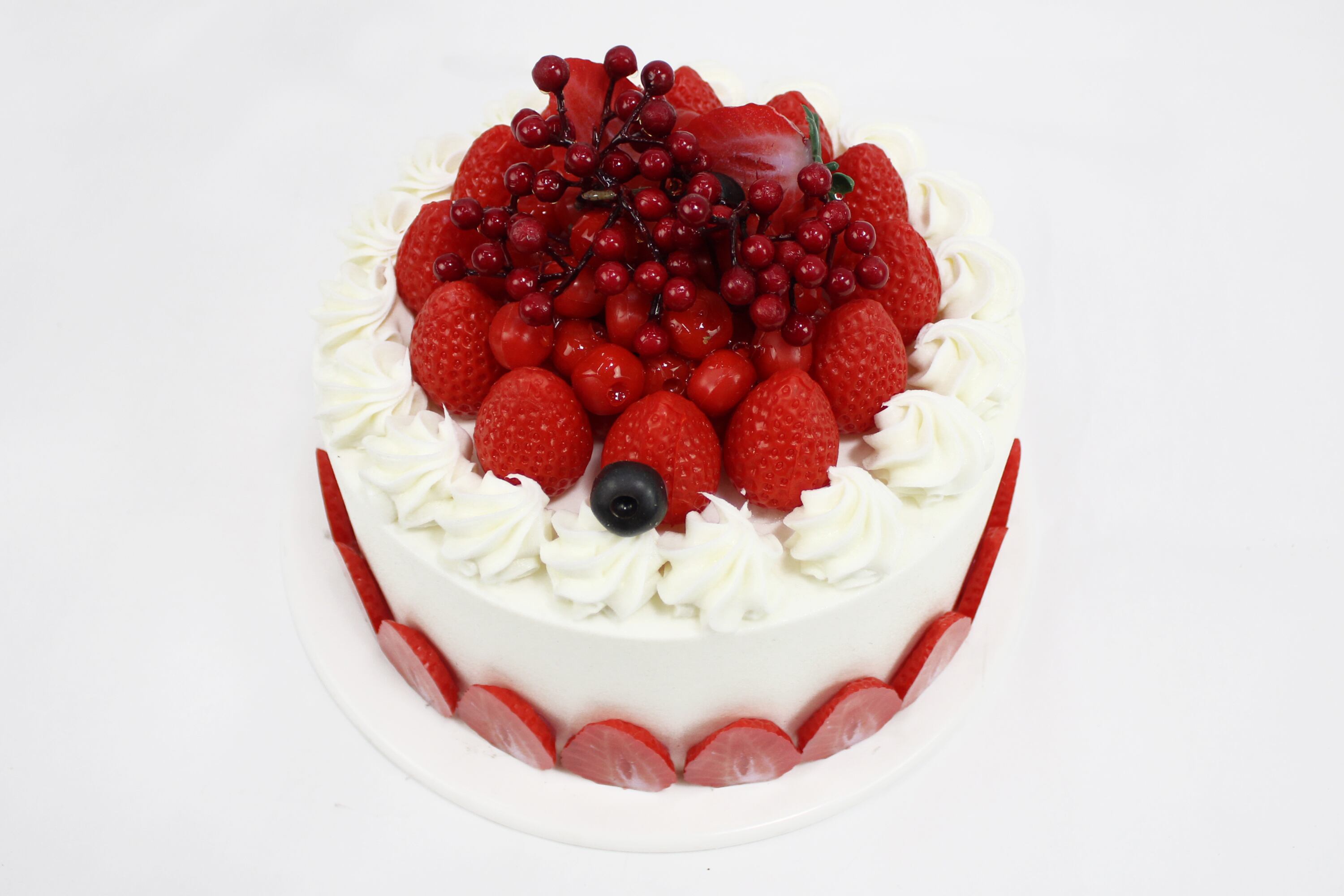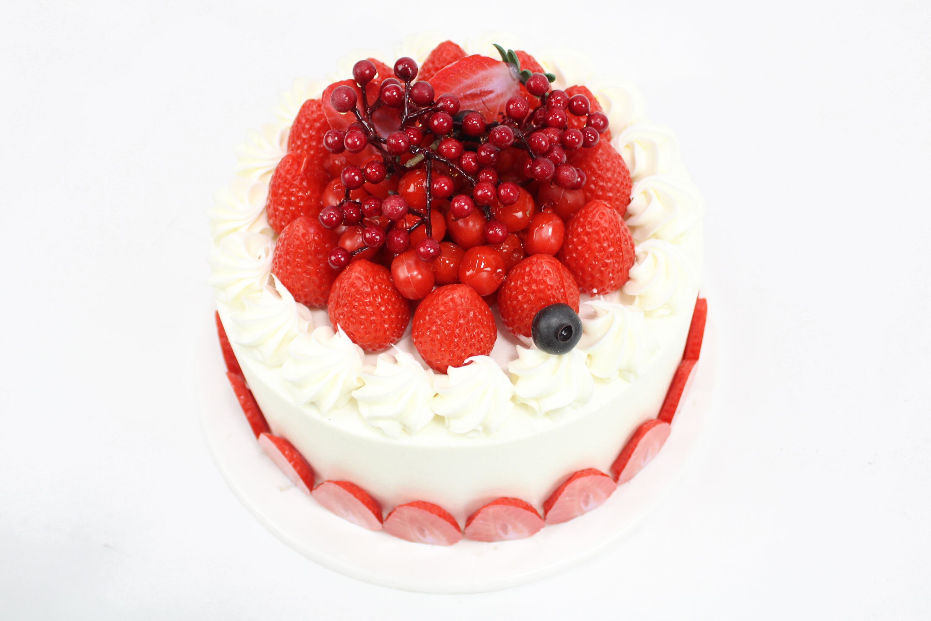いちごやラズベリーをあしらった、クリームたっぷりの王道デザイン。