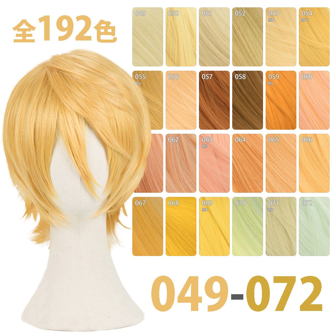 コスプレ耐熱ウィッグ 汎用カラー ゴールド ショートウィッグ ★推しの子/アクア ★にじさんじ/エクス・アルビオ 等 ★192色のバリエーション!多様キャラのコスプレに最適です! 【1304-053】 ★即納品★