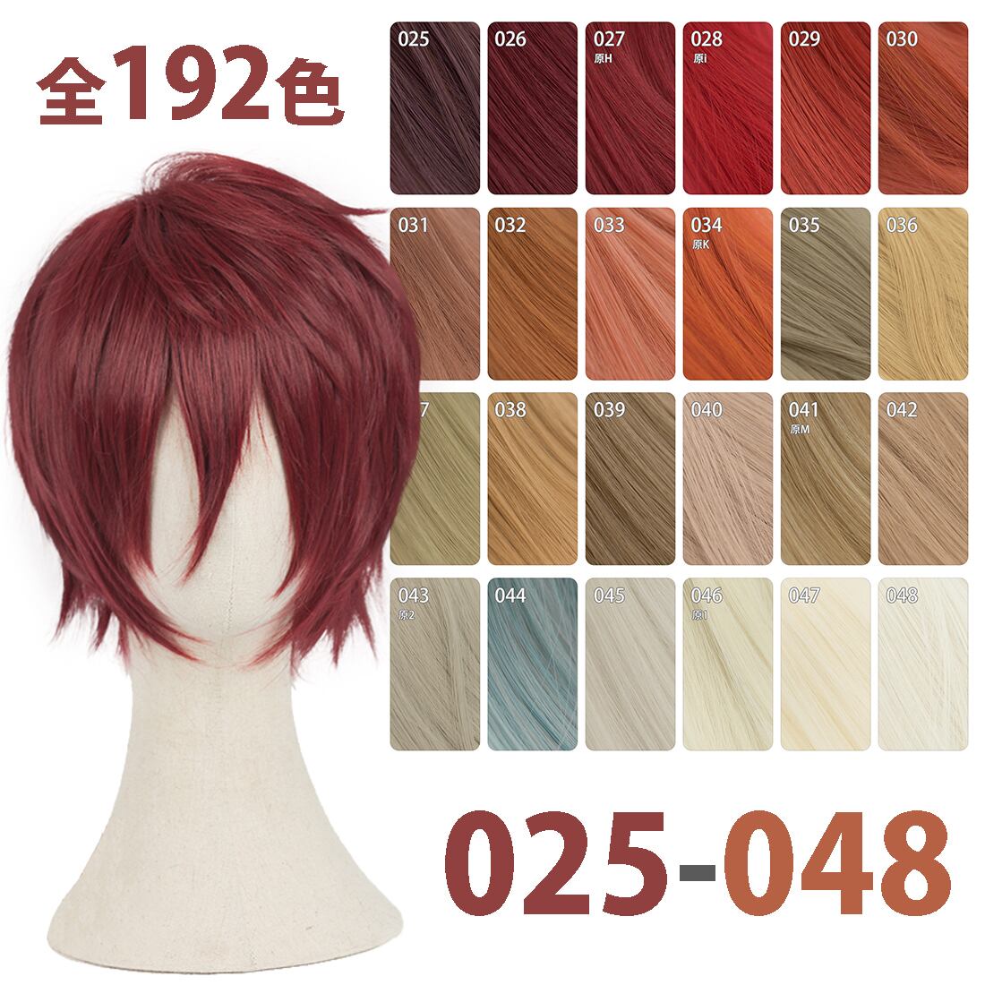 コスプレ耐熱ウィッグ 汎用カラー オレンジレッド ショートウィッグ ★ヒプノシスマイク/観音坂独歩 ★ダンダダン/円城寺仁 ジジ 等 ★192色のバリエーション!多様キャラのコスプレに最適です! 【1304-029】 ★即納品★