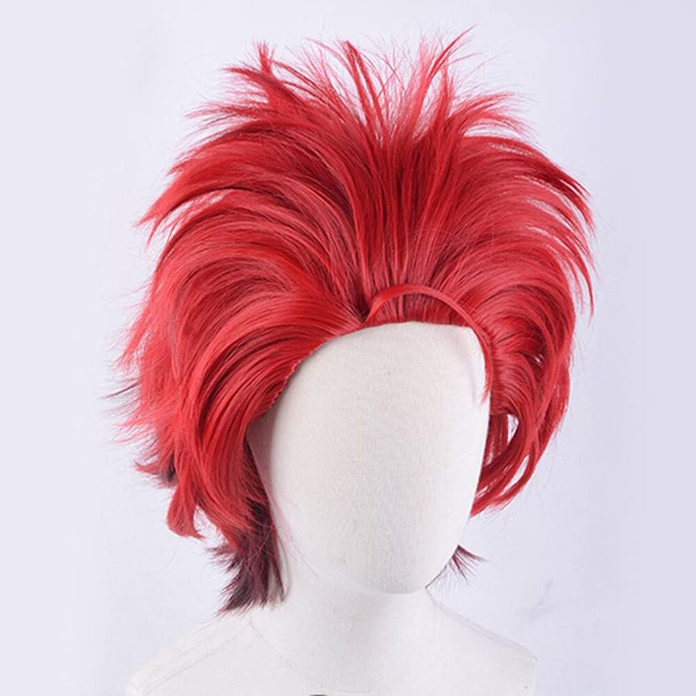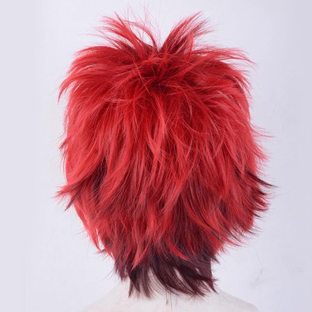コスプレ耐熱ウィッグ レッド ワインレッド メッシュ 前髪立ち上げ オールバック ショートカット キャラクターウィッグ ★あんさんぶるスターズ!!/鬼龍紅郎 等 ★即納品★