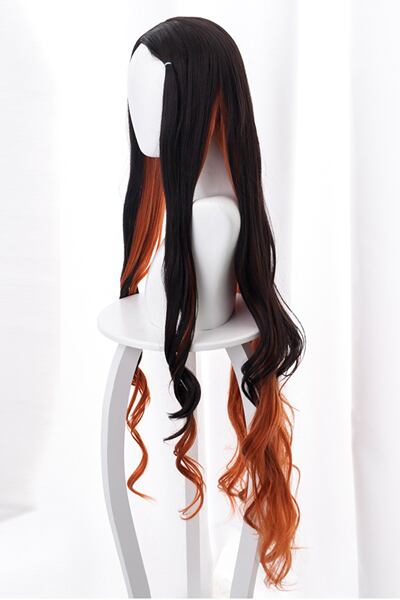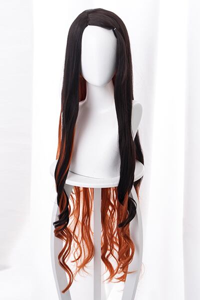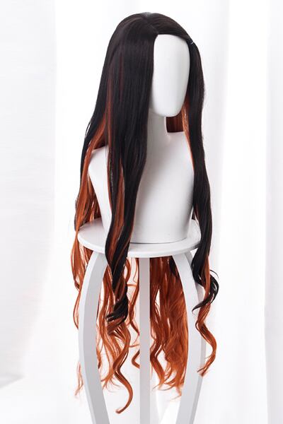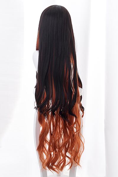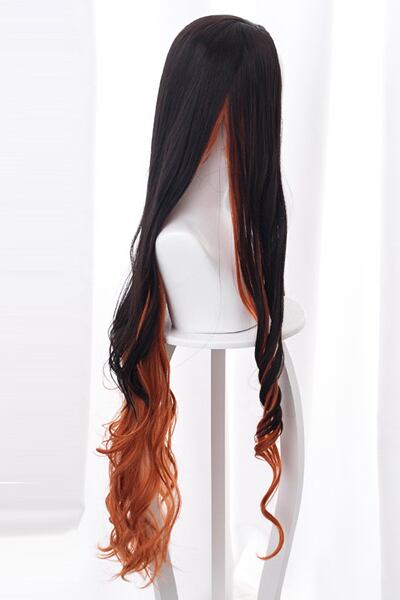 【487B】コスプレ耐熱ウィッグ ナチュラルブラック オレンジ 2トーン カールロング ウィッグ ★鬼滅の刃/竈門禰豆子 ★即納品★