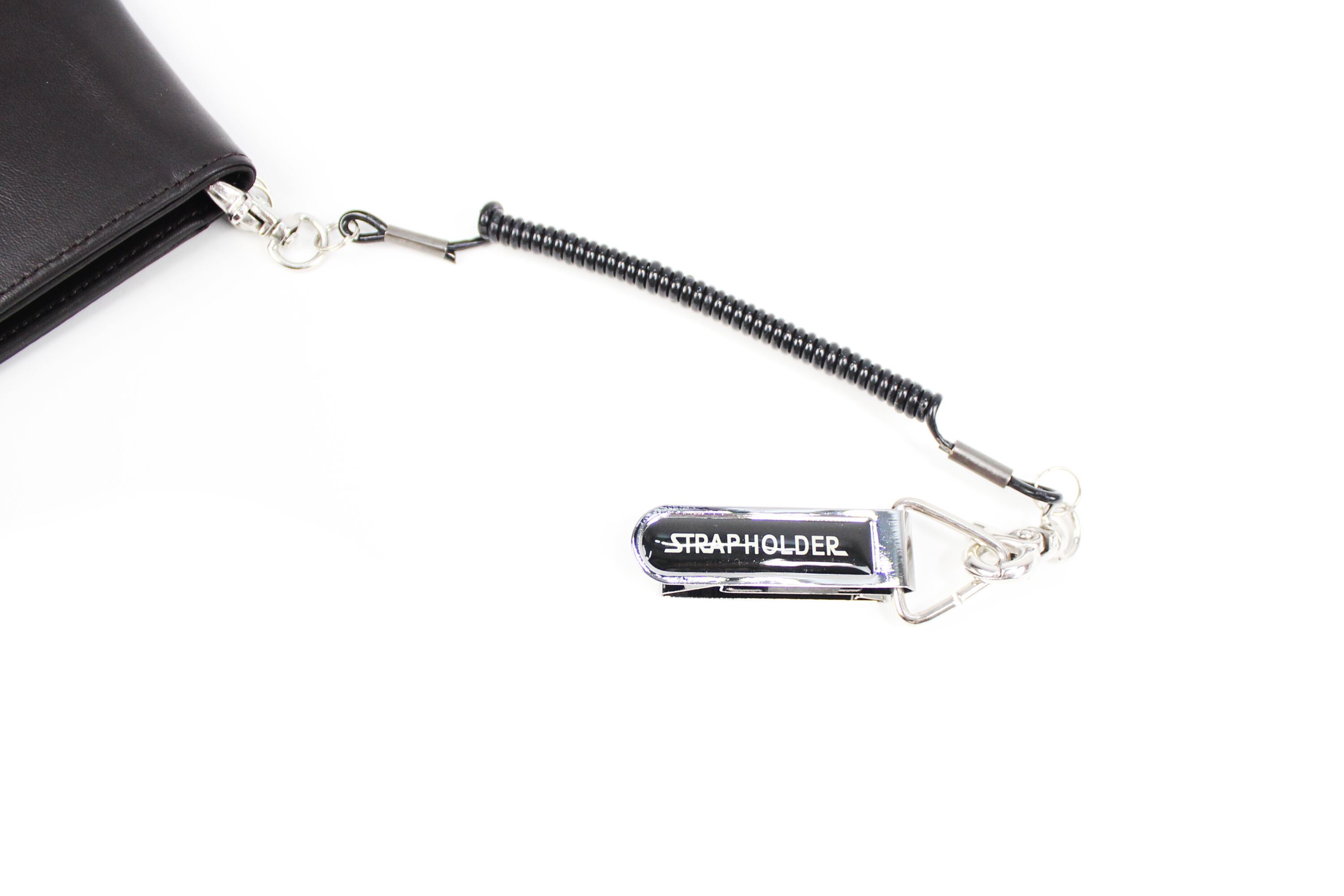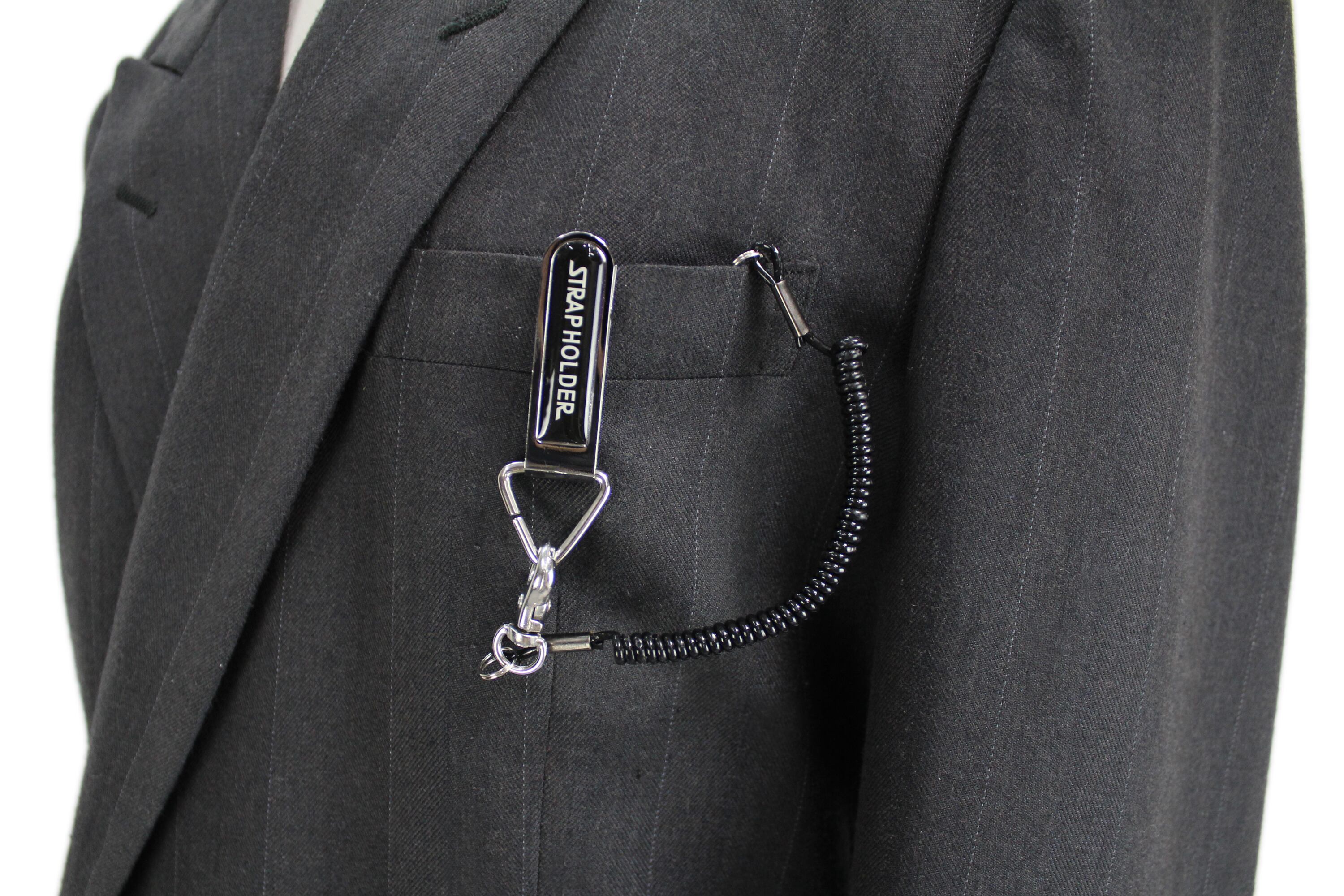 警察手帳の落下防止を防ぐ為のバネストラップです。ポケットやベルト等に挟むクリップ付きとなっております!お持ちの手帳等に付けてお楽しみください。