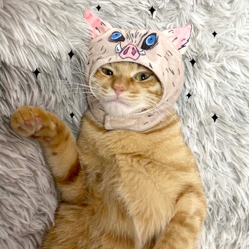 ペット用 コスプレ衣装 猫服 犬服 鬼滅の刃 風 嘴平伊之助 はしびらいのすけ 猪 かぶり物 帽子 【ワンサイズ】 ★即納品★