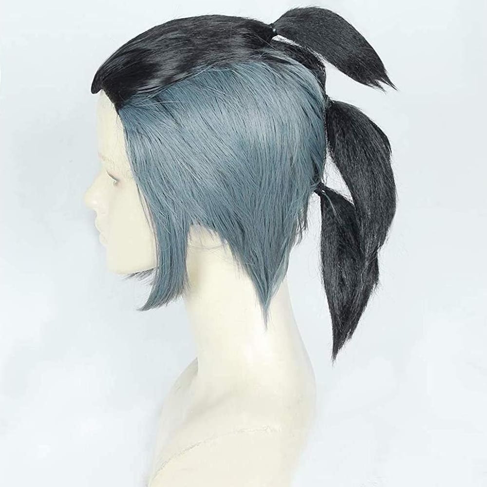 コスプレ耐熱ウィッグ ブラックグレー オールバック ウィッグ ★ポ○モン剣盾/キバナ 等 ★受注品★