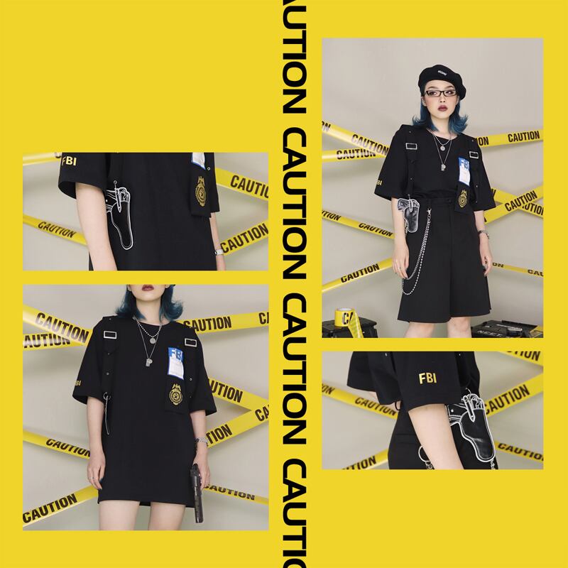 FBIをモチーフにした可愛いTシャツです!左胸にはFBI手帳をイメージした飾りが付いています!脇周りはホルスターをイメージさせるかっこいいベルト付き!