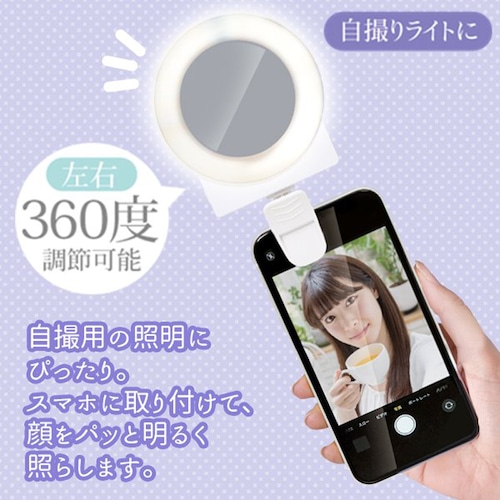 スマホでの自撮りや動画配信に大活躍!ライトで顔周りを明るく照らして、印象アップ!