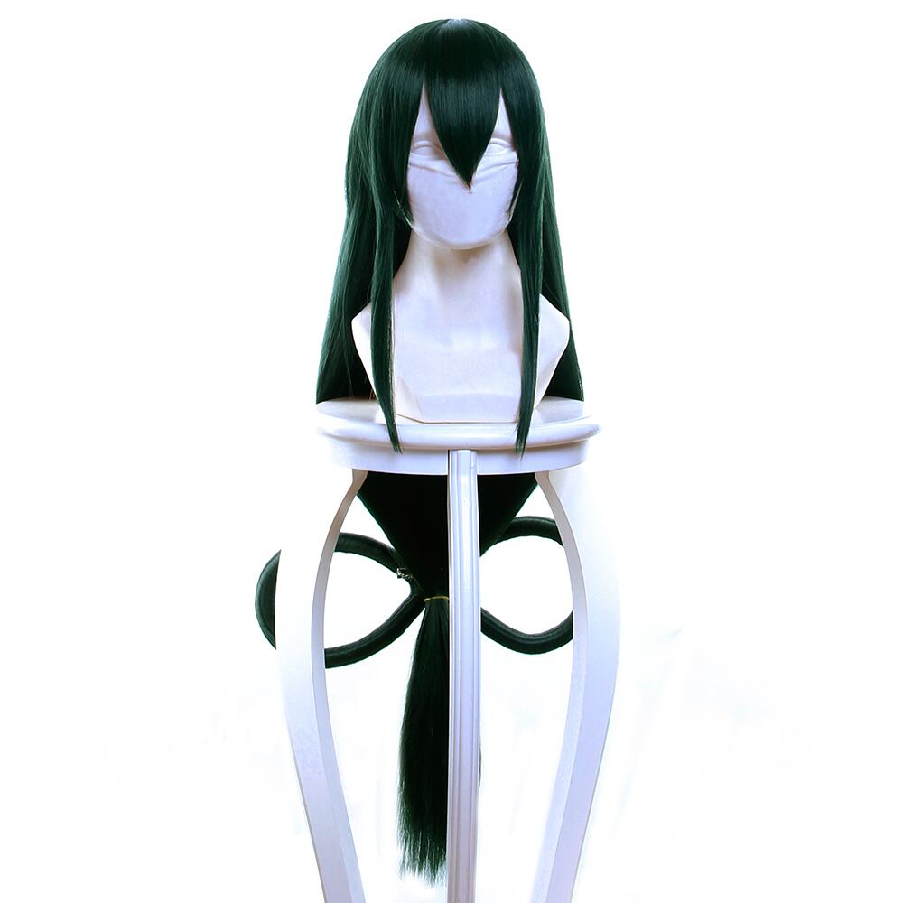 【445A】コスプレ耐熱ウィッグ ダークモスグリーン リボン型ウィッグ付き ロング ウィッグ ★僕のヒーローアカデミア/蛙吹梅雨 等 ★受注品★