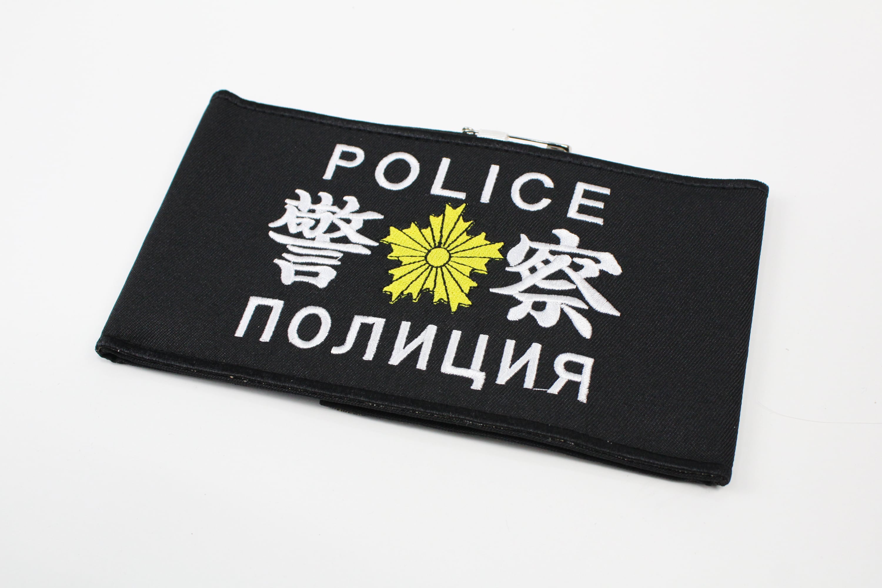 英語、日本語、ロシア語で警察と記載した腕章になります。文字部分は刺繍となります。
