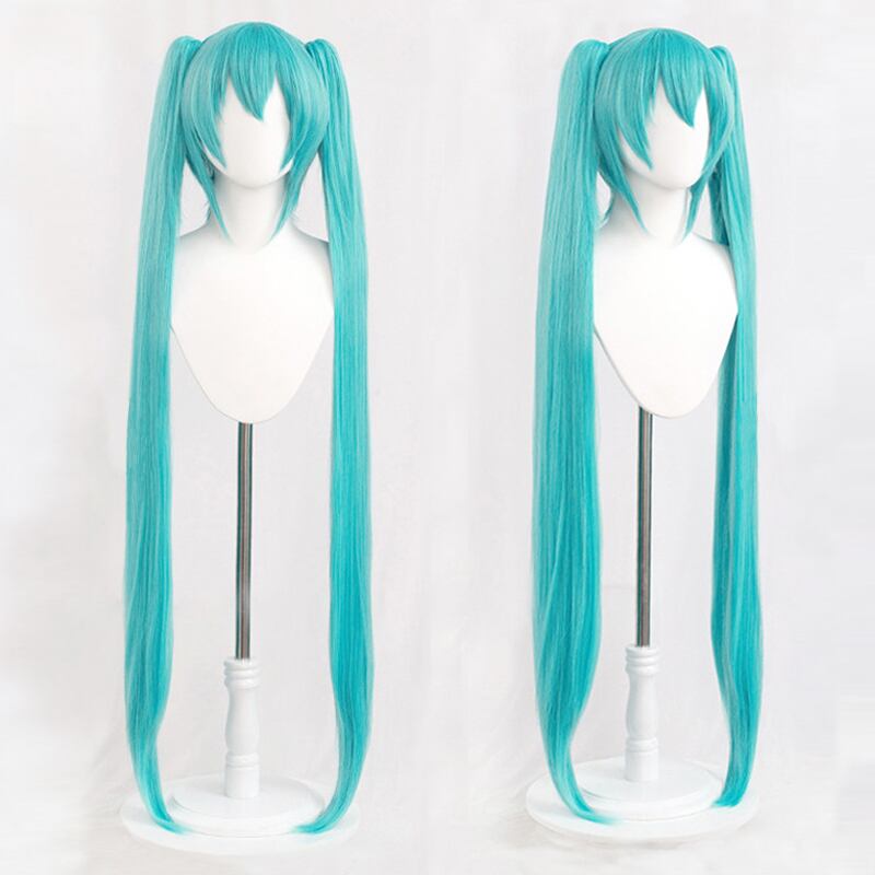 コスプレ耐熱ウィッグ エメラルドブルー アクアブルー ツインテール バンス付き キャラクターウィッグ ★VOCALOID/初音ミク ★受注品★