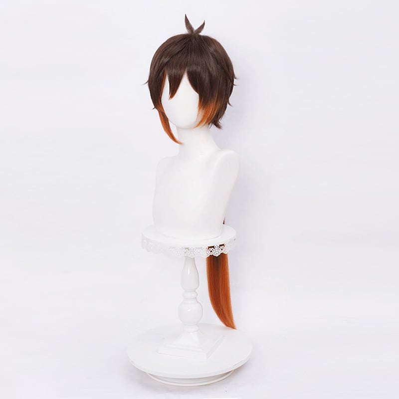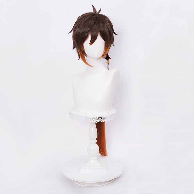 【D1732】コスプレ耐熱ウィッグ ブラウン オレンジ 2トーン ロング ウィッグ ★原神/鍾離 等 ★受注品★