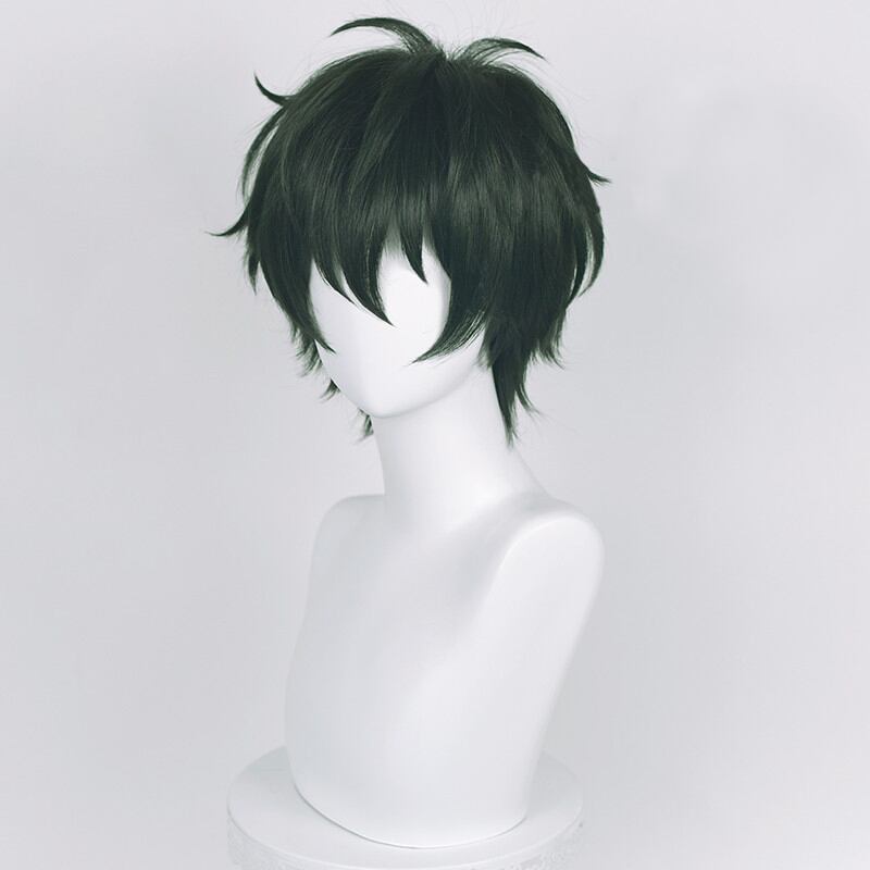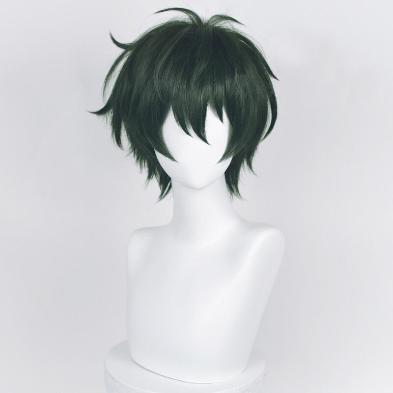 【F0221】コスプレ耐熱ウィッグ モスグリーン ミディアムショート ウィッグ ★あんさんぶるスターズ!!/影片みか ★テニスの王子様/越前リョーマ 等 ★即納品★