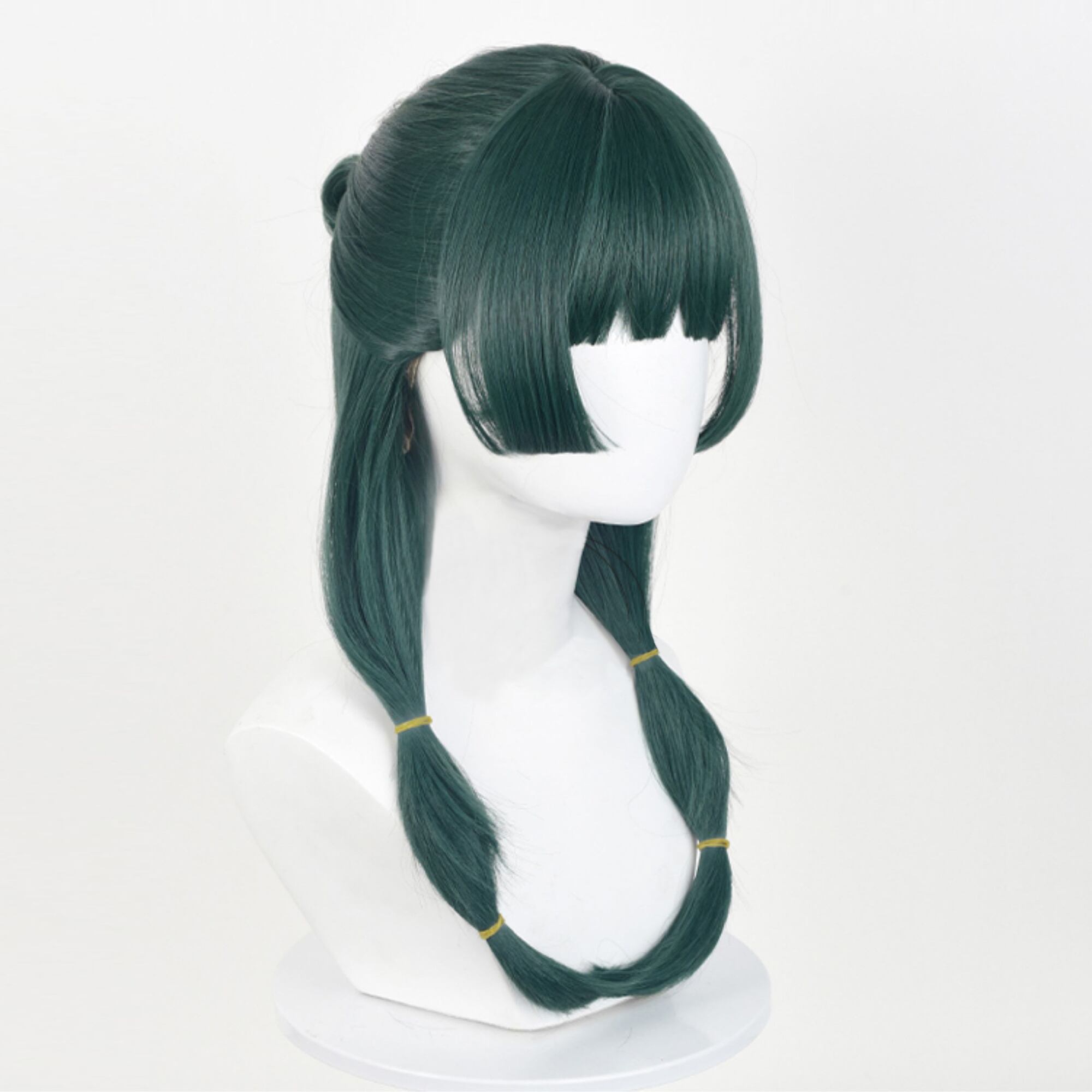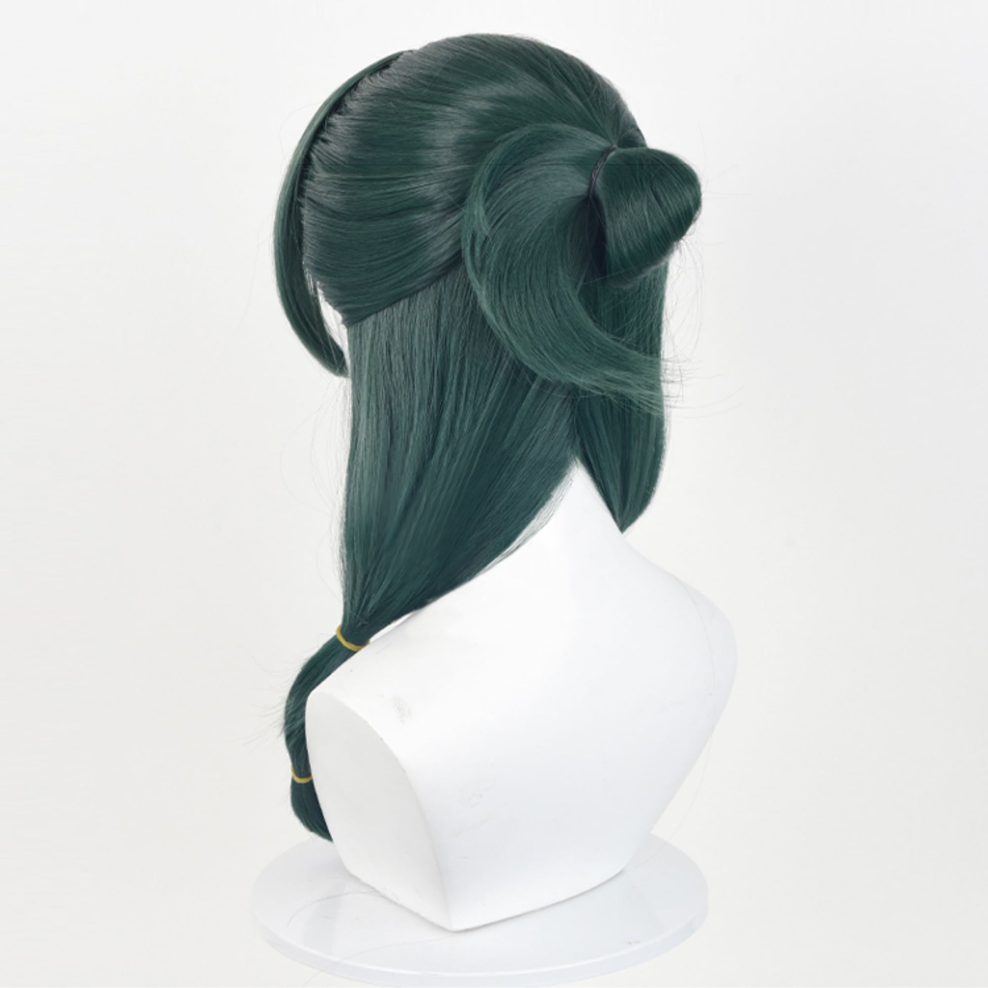 コスプレ耐熱ウィッグ ダークグリーン セミロング 二つ結び お団子 キャラクターウィッグ ★薬屋のひとりごと/猫猫(マオマオ) 等 ★即納品★