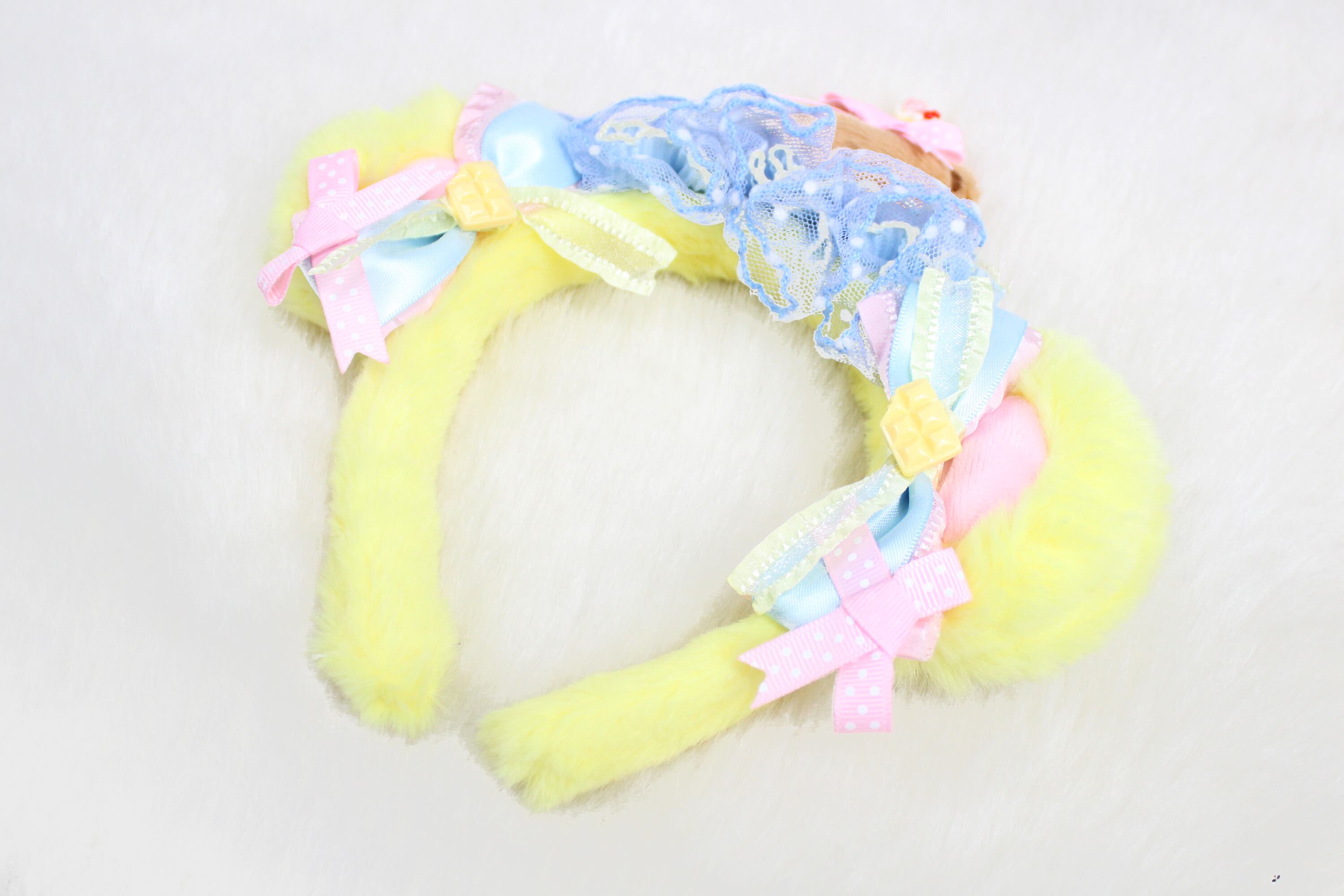 撮影用アイテム ロリータ パステルカラー スイーツ くま耳 カチューシャ 髪飾り ★創作やパロディのコスプレ等、撮影用に! ★即納品★